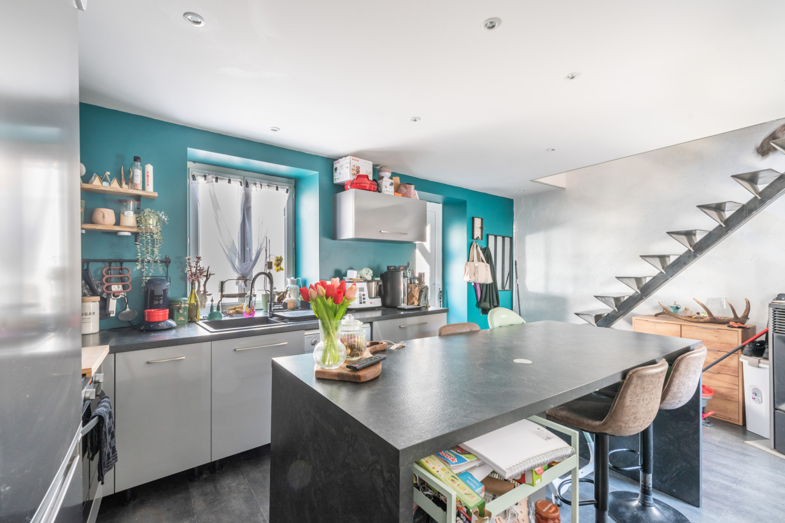 Au rez-de-chaussée vous trouverez une cuisine équipée moderne et fonctionnelle, une pièce pouvant faire office de bureau, petite chambre, au 1er étage, un salon lumineux et chaleureux, ainsi qu’une salle de bains-Wc, au dernier étage une chambre confortable et une pièce supplémentaire pouvant accueillir un dressing ou un bureau.