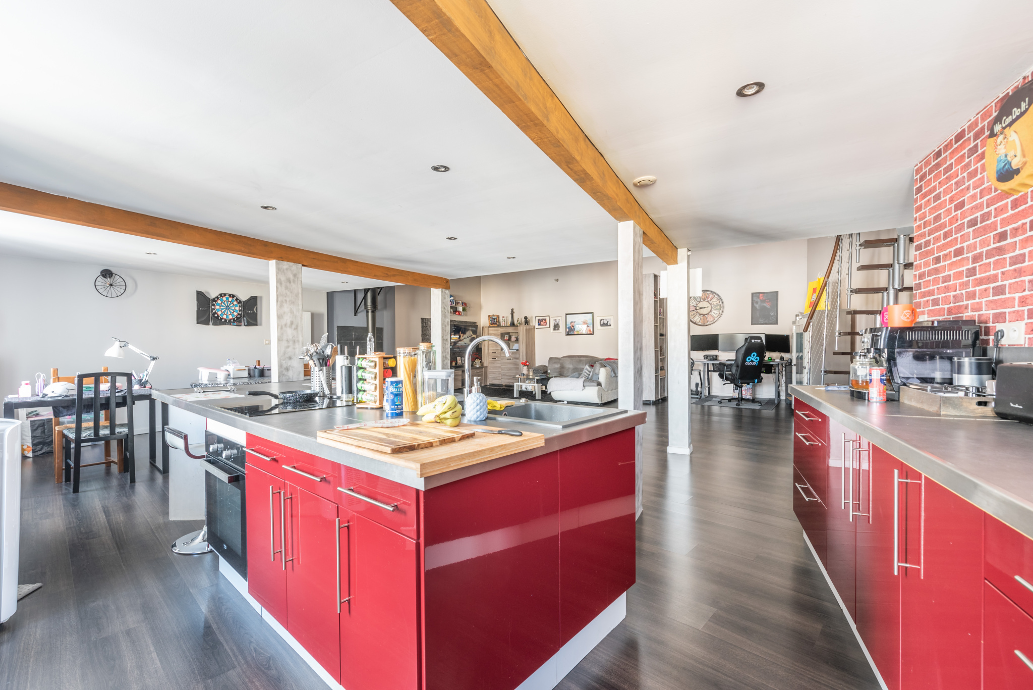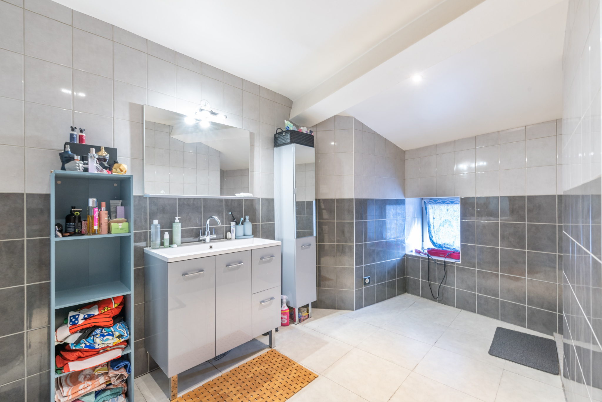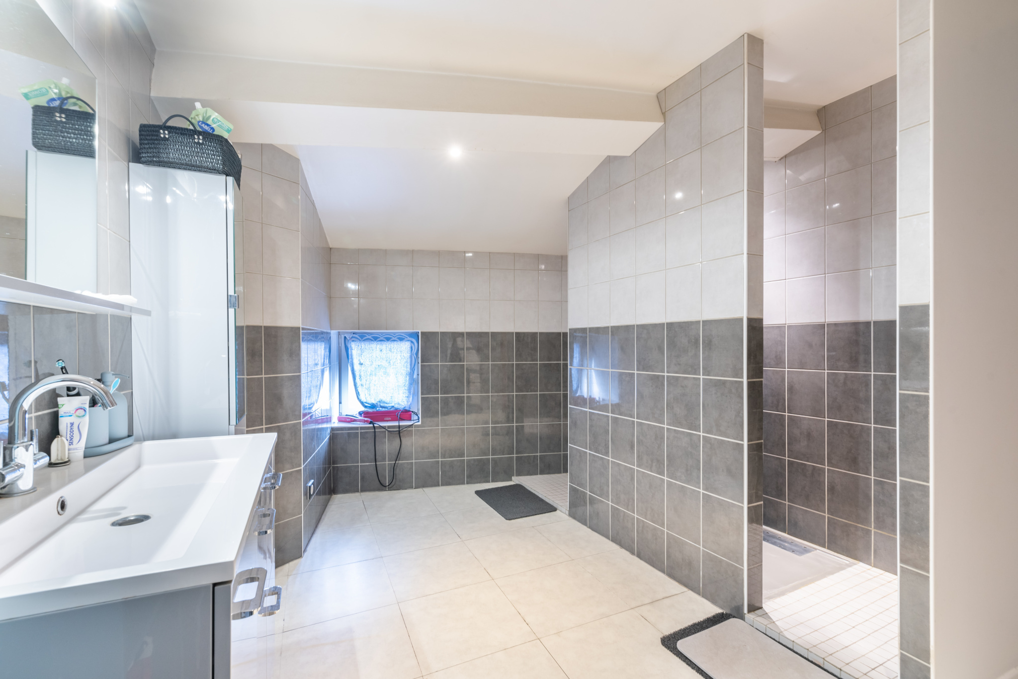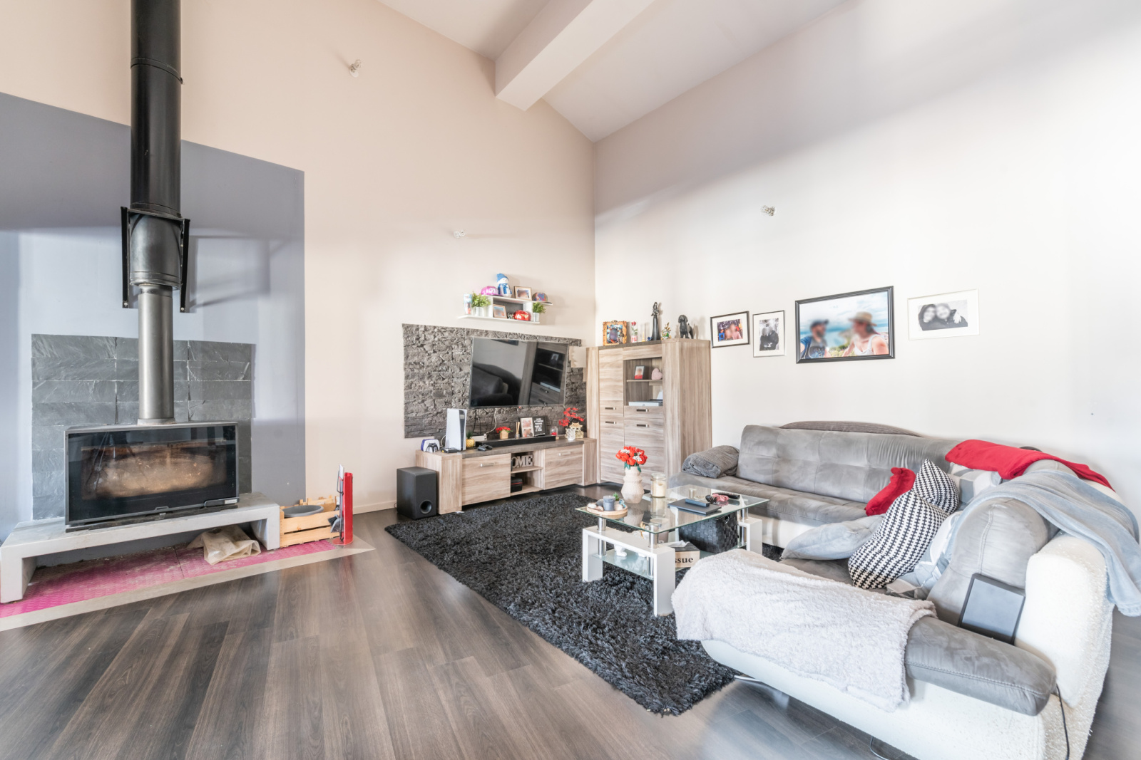 Au premier étage, vous serez séduit par cette belle pièce de vie avec sa belle hauteur sous plafond.