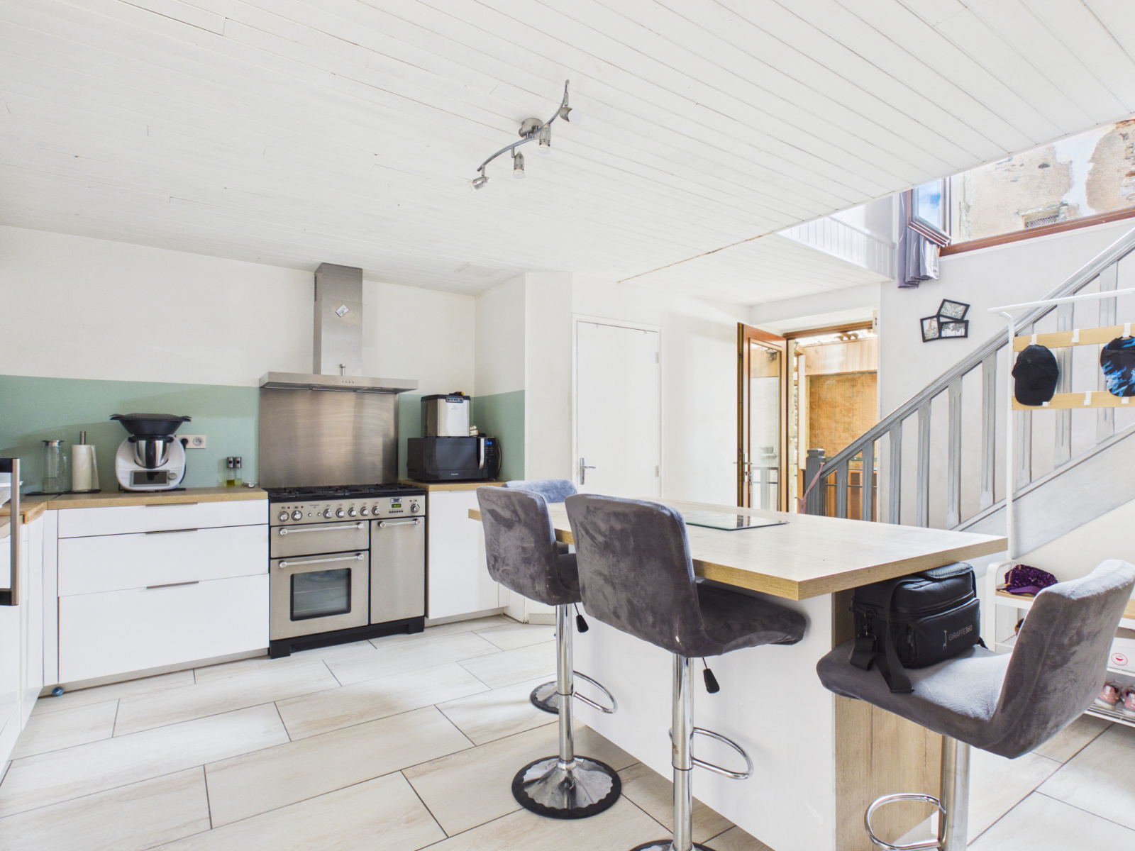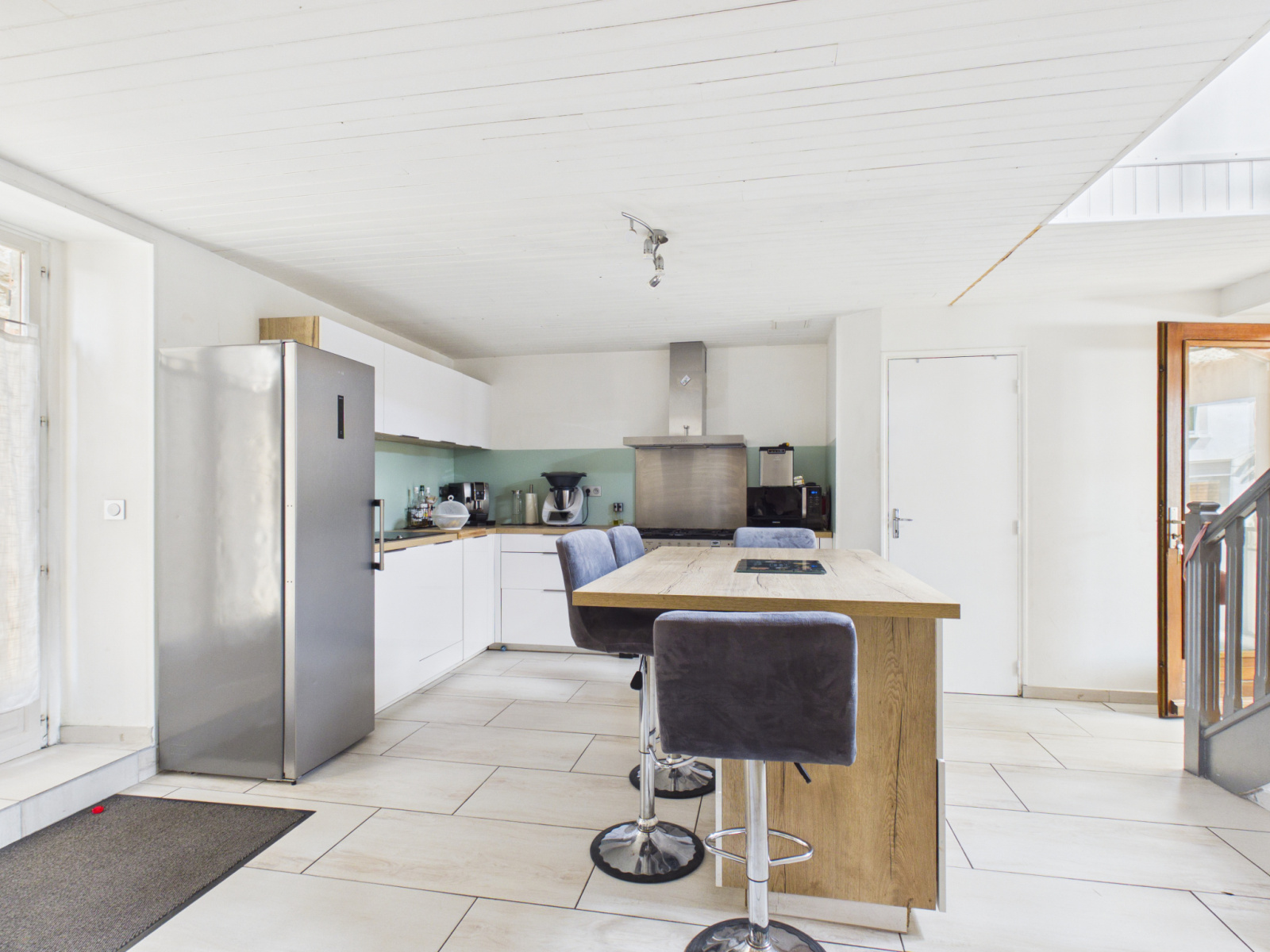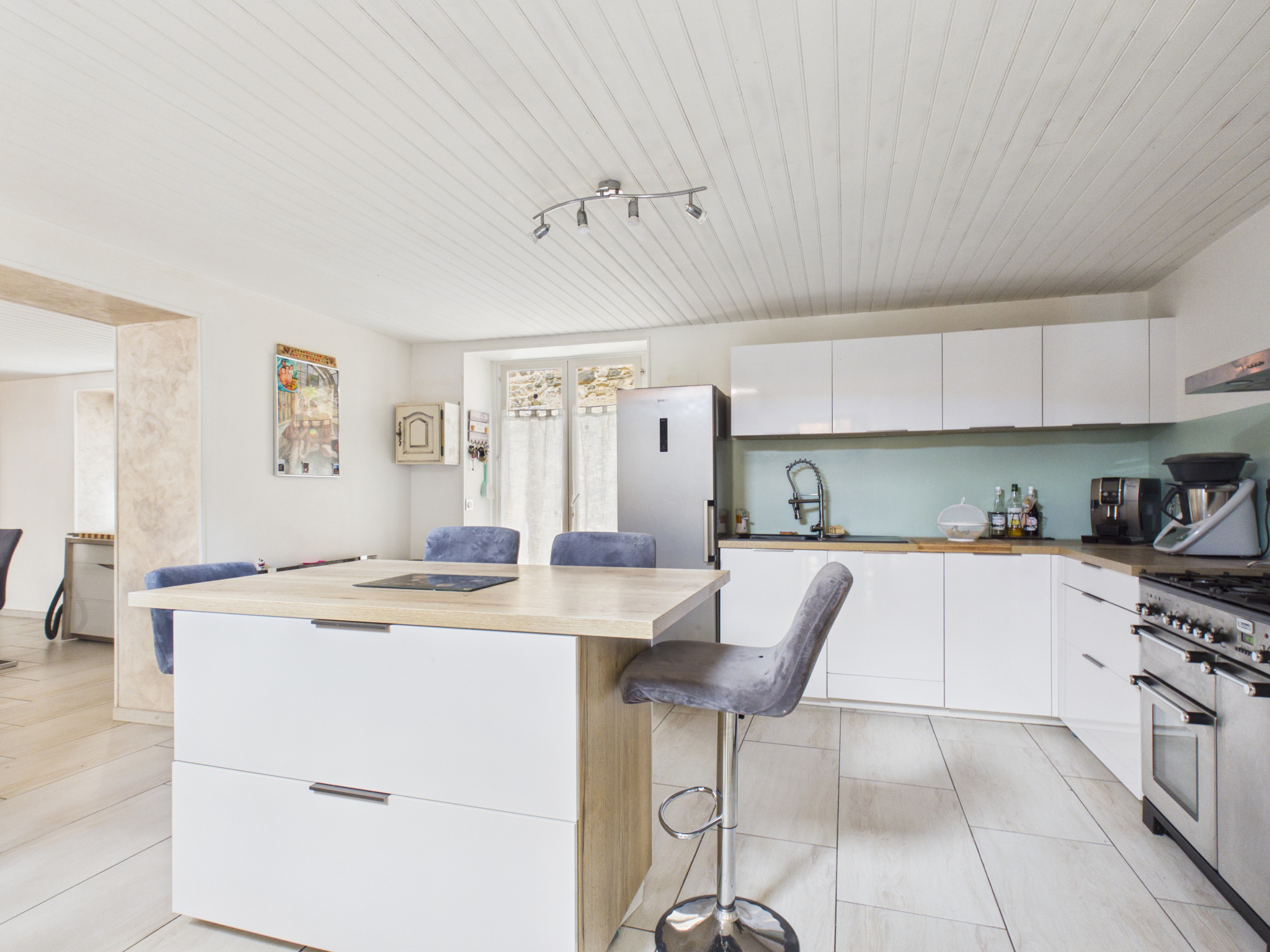 Dès l’entrée, vous découvrez une belle pièce de vie avec une cuisine entièrement équipée et aménagée, ouverte sur le salon/salle à manger. Cet espace convivial donnant directement sur une terrasse, parfaite pour profiter des beaux jours. Un Wc et un cellier complètent le rez-de-chaussée.
