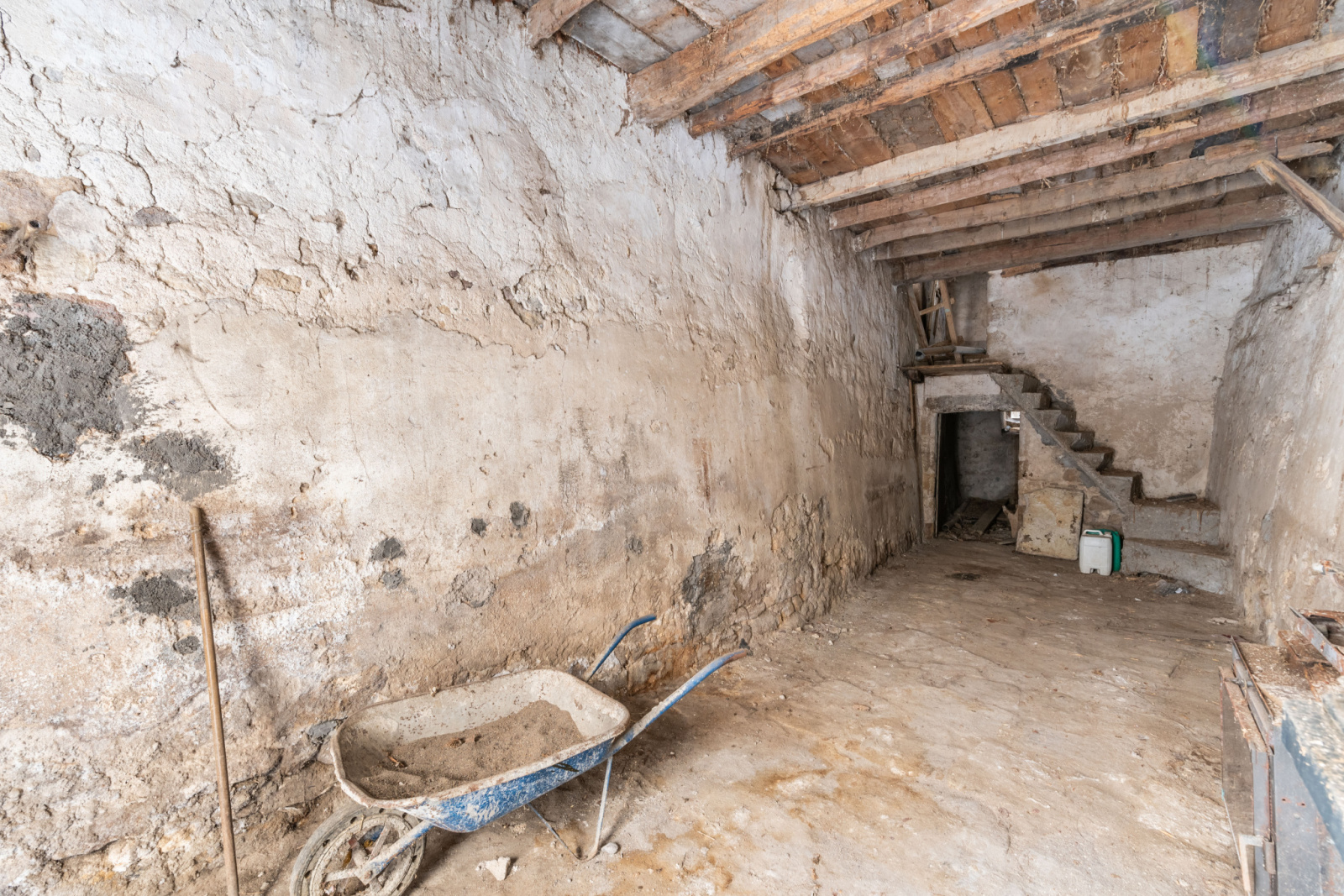 Au rez-de-chaussée, vous trouverez une cuisine avec accès à une cave, un séjour ainsi qu’un WC indépendant.