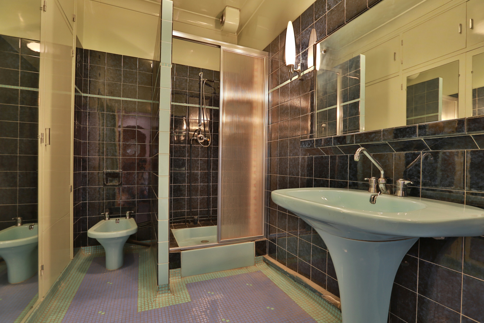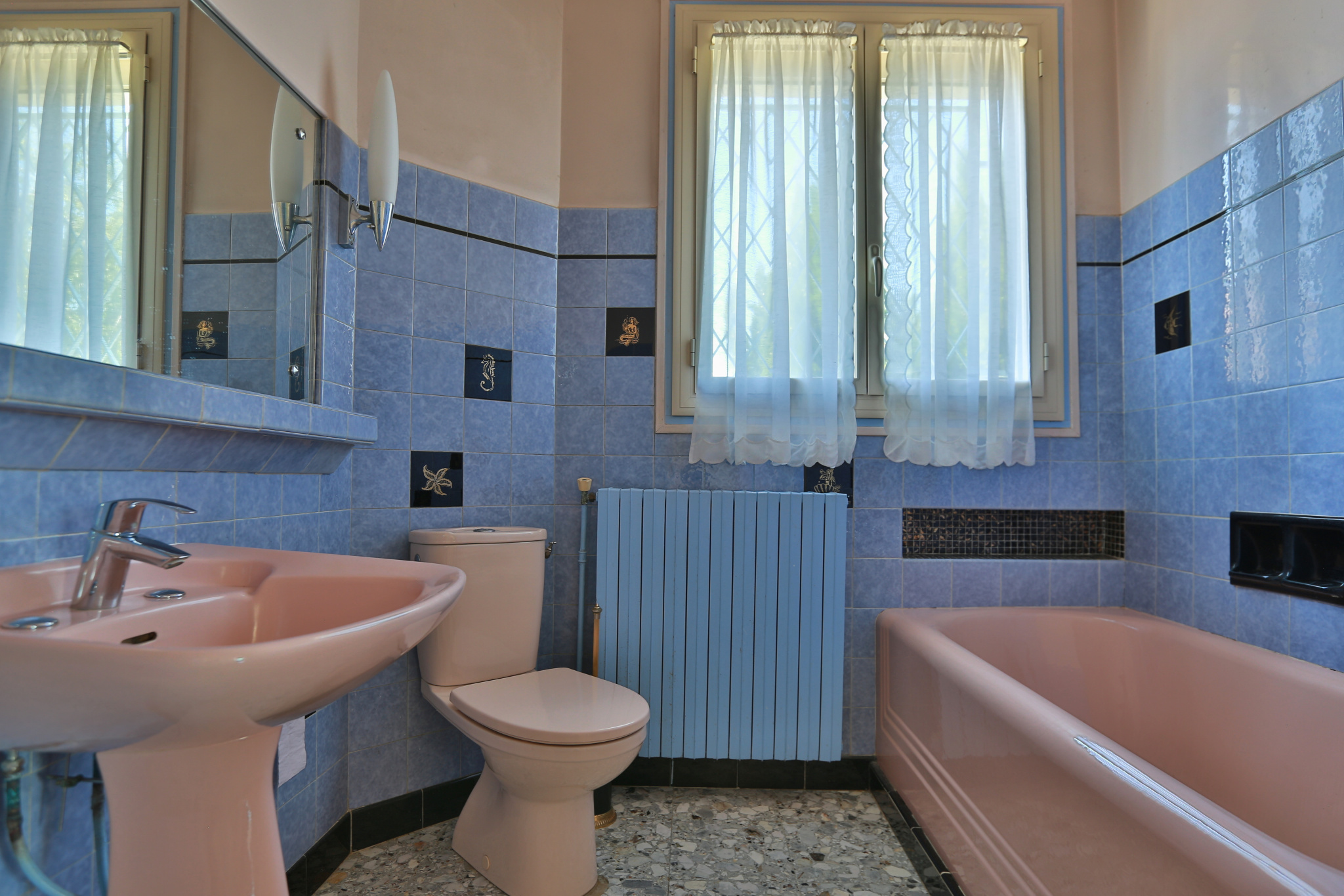 La cuisine aménagée, dans un style vintage, bénéficie elle aussi d’un accès extérieur.