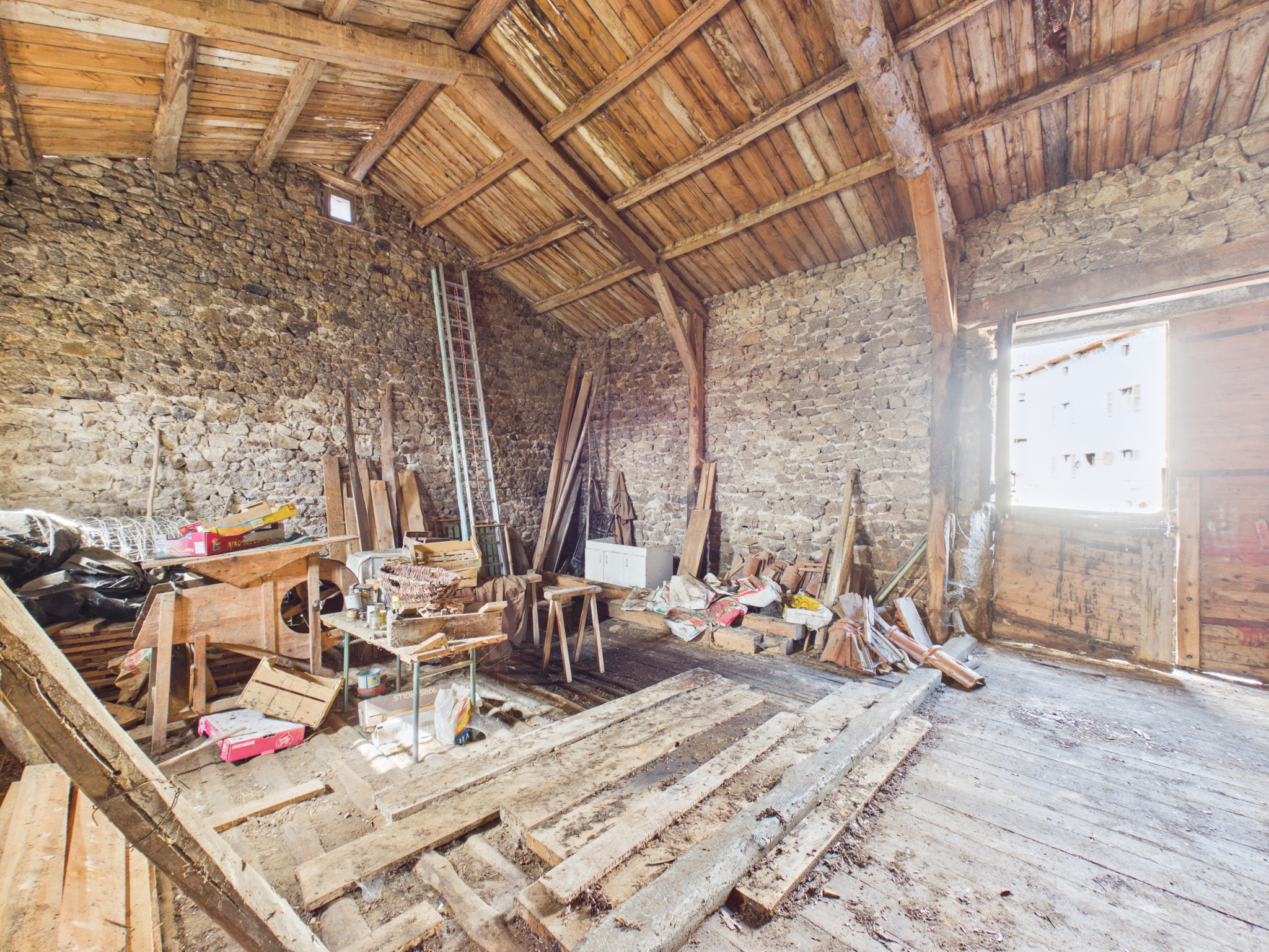 Ce bâtiment authentique offre de nombreuses possibilités : transformation en maison, atelier, garage ou espace de stockage. Les volumes généreux sur deux niveaux permettent d’aménager selon vos besoins et envies.