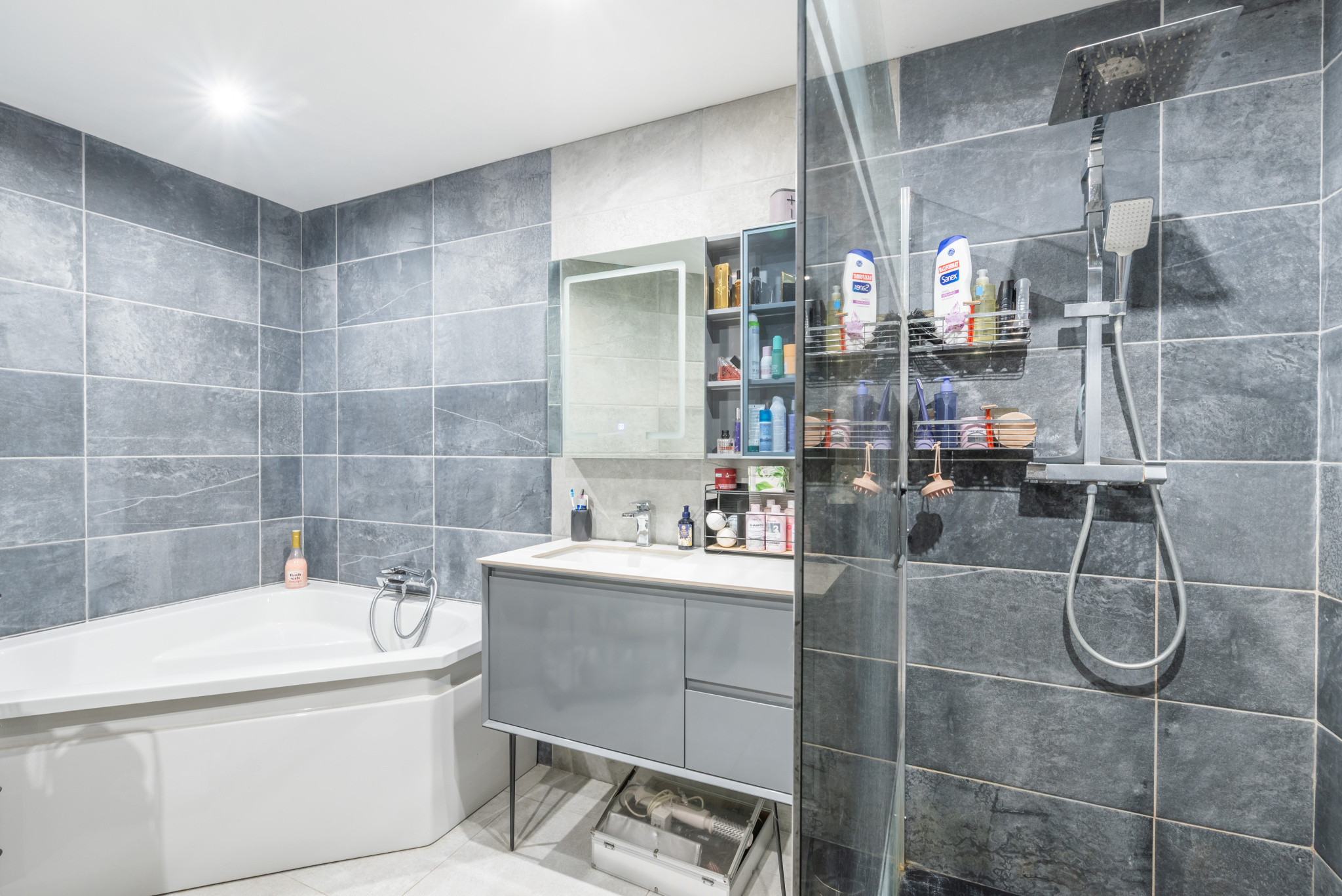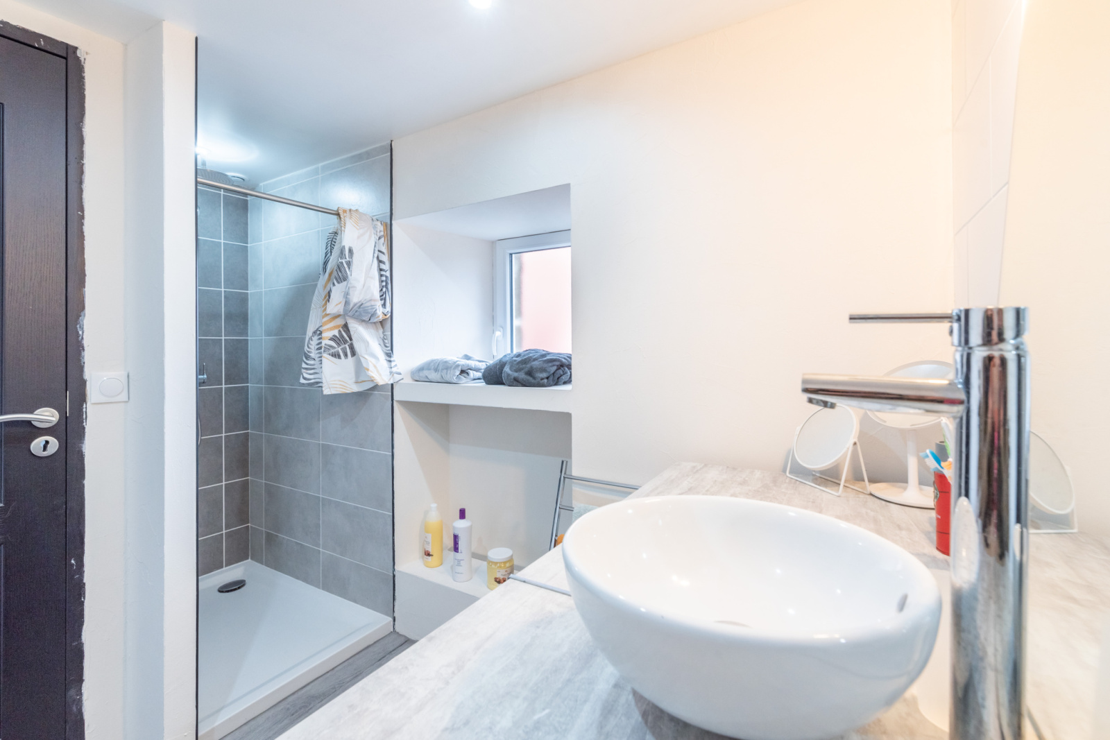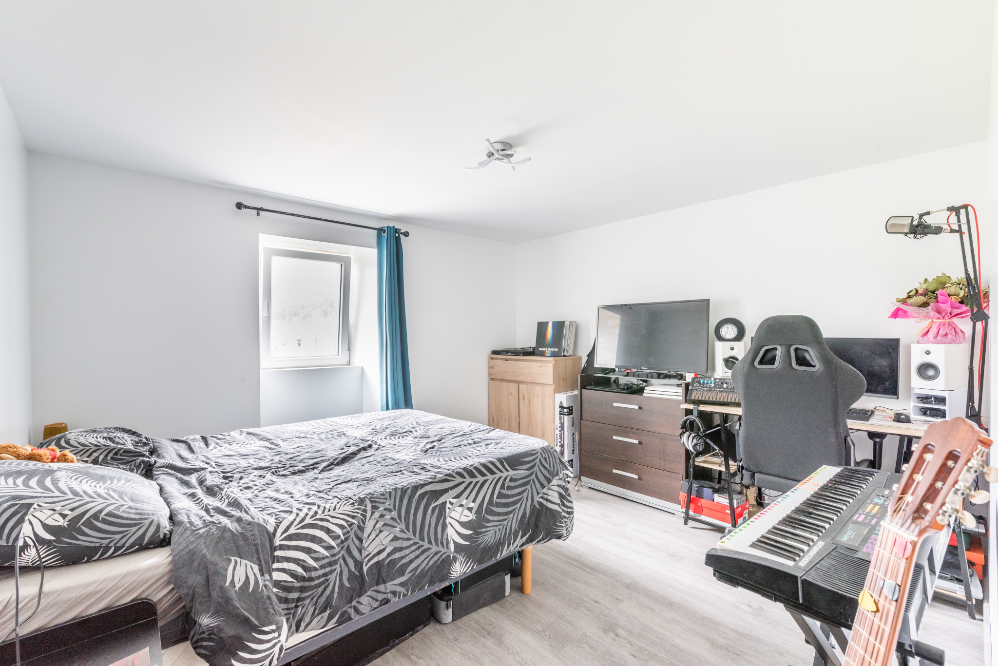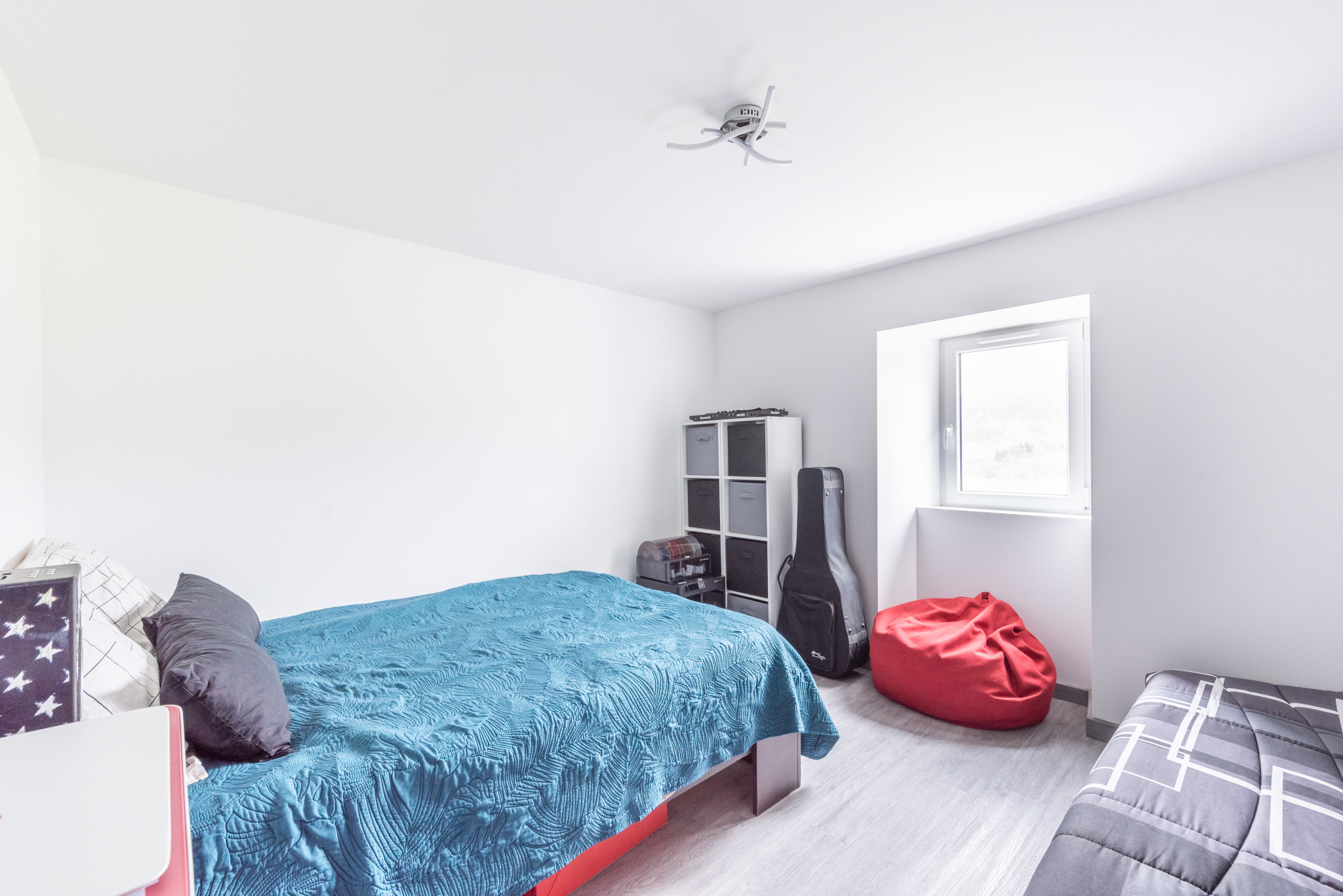À l’étage se trouvent quatre autres chambres, dont une actuellement aménagée en dressing. La chambre principale dispose d’une salle de bain attenante avec baignoire et douche. Une seconde salle de douche se trouve également à cet étage.