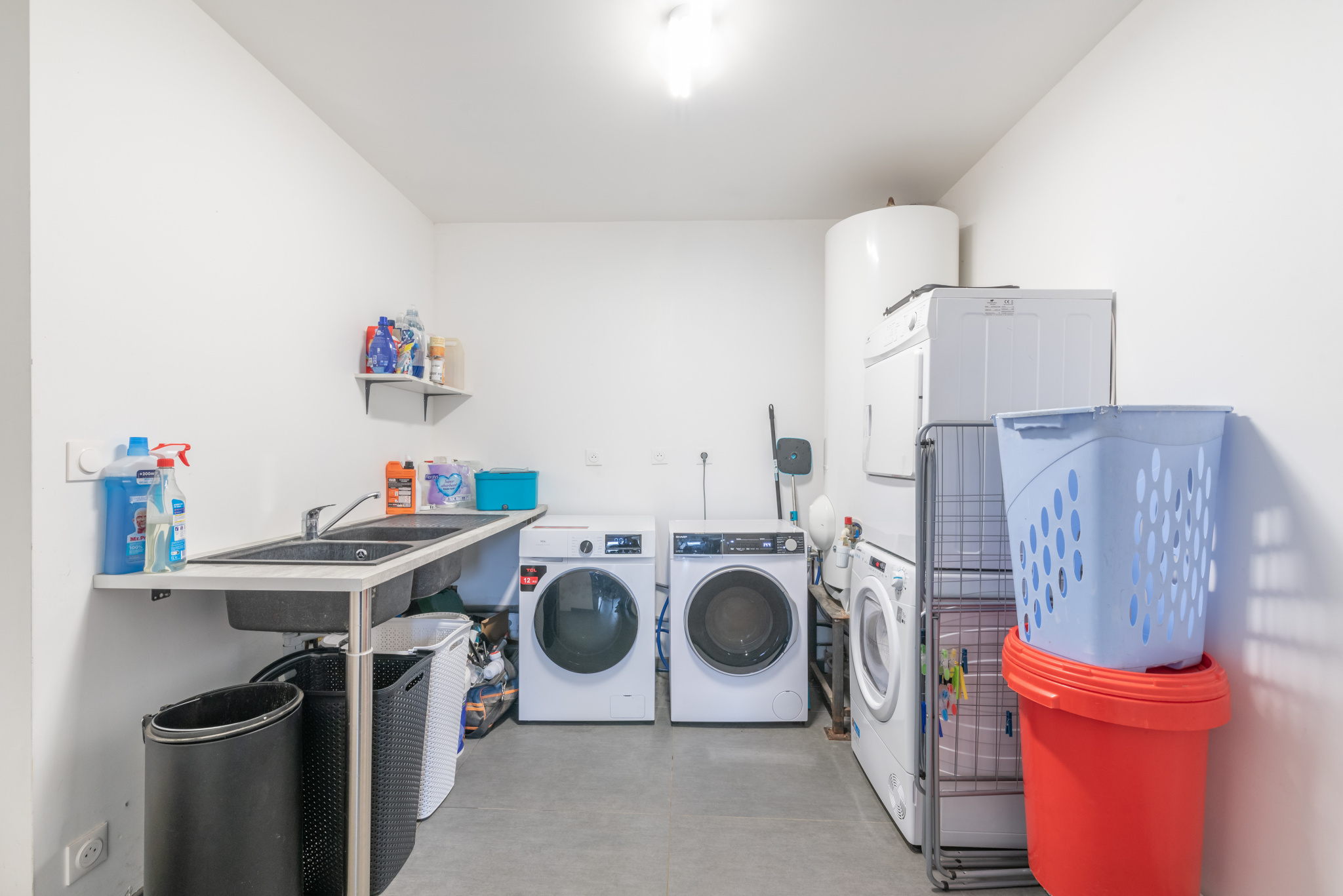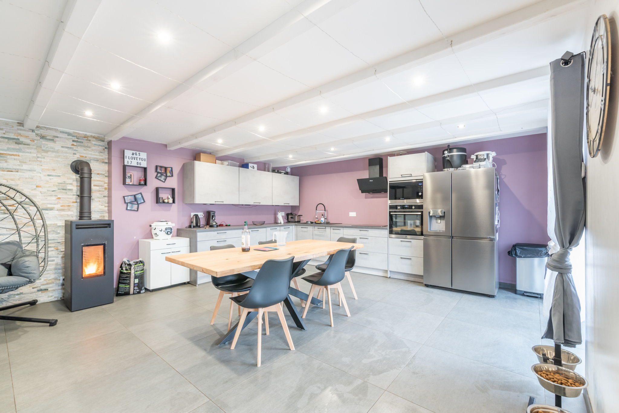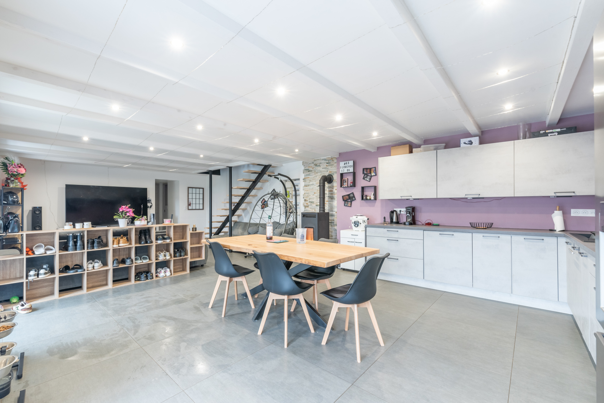 Le rez-de-chaussée s’organise autour d’une grande pièce de vie de 48,5 m² comprenant cuisine, salle à manger et salon, formant un espace convivial et lumineux. Une chambre de plain-pied et une buanderie complètent ce niveau.